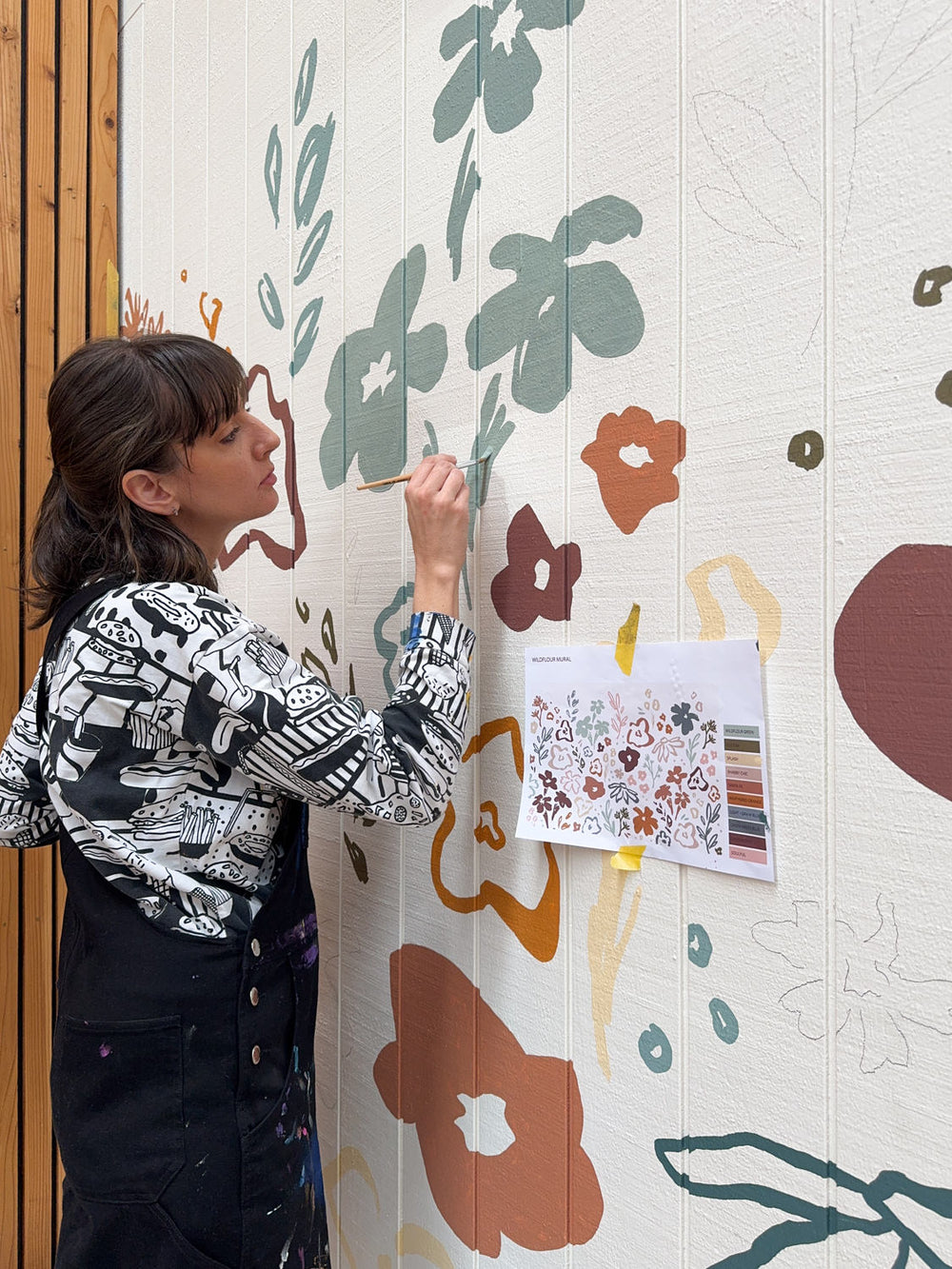 My work is bold, playful and always brings life to a space. I’m a mural artist who loves turning big blank walls into colourful murals that make people stop, smile and actually feel something.