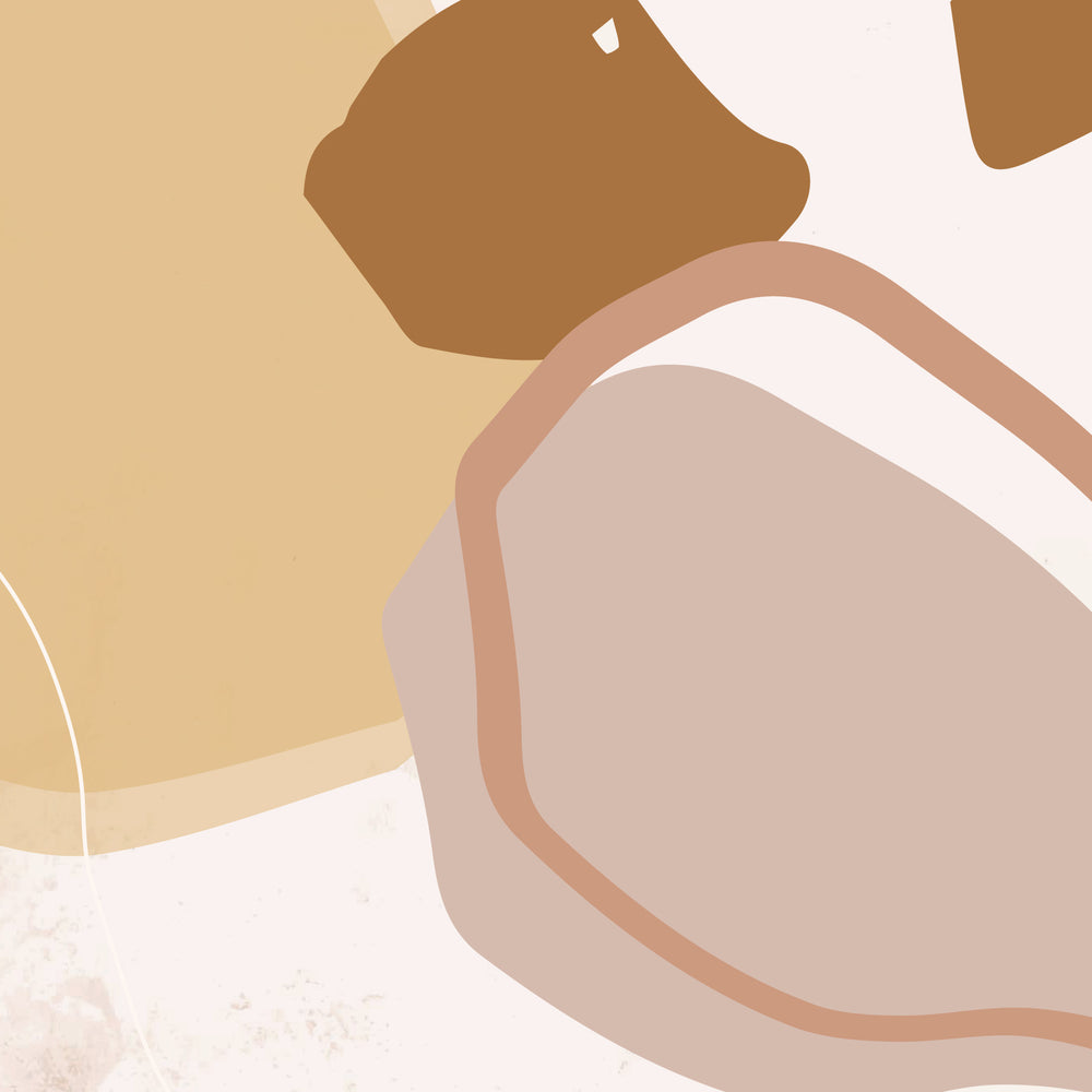 Cool blue tones are contrasted by warm rust and lemon yellow in this abstract composition.