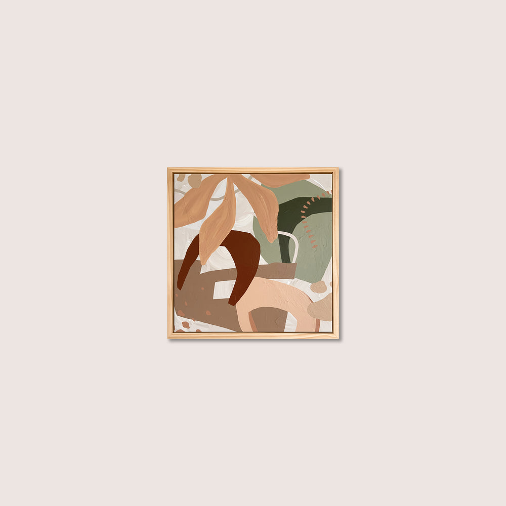 Inspired by my hand cut paper collage compositions, this original explores shape, scale and layering. The colour palette consists of raw terracotta, rich red and mossy green.