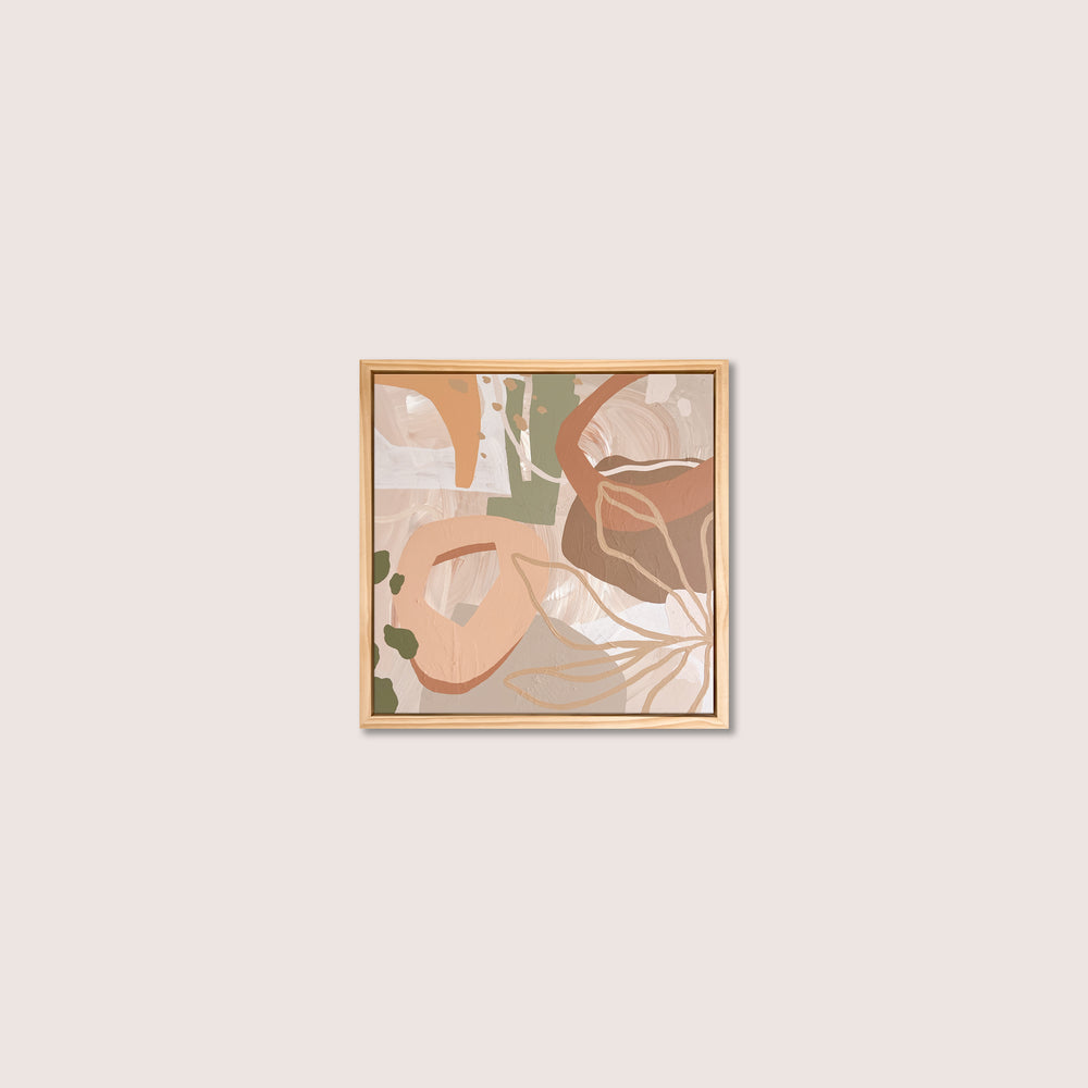 Inspired by my hand cut paper collage compositions, this original explores shape, scale and layering. The soft colour palette consists of pale terracotta, chalky brown and mossy greens.